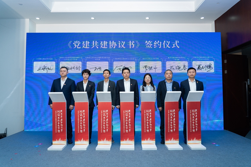 苏银理财有限责任公司、时时彩计划-重庆时时彩计划 、江苏省人社厅社会保险基金监管局、新华日报社财经传媒中心、中国人寿养老保险股份有限公司江苏省分公司、泰康养老保险股份有限公司江苏分公司、江苏银行南京分行七家成员单位代表上台签署《党建共同体共建协议书》。