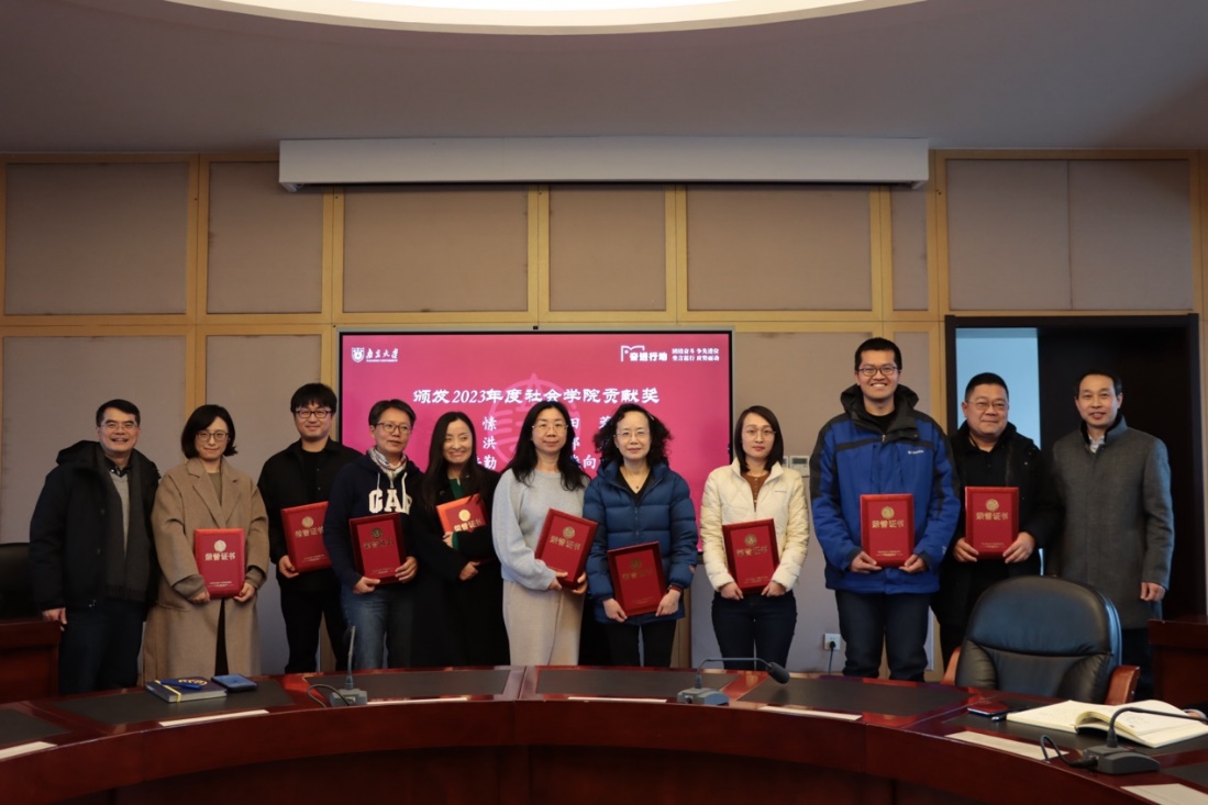 2023年度贡献奖的颁奖仪式。王建富、吴愈晓为获奖的徐愫、田蓉、张洪、邱月、周培勤、柴向南、许琪、汪瑞、杨渝东、袁晶晶(排名不分先后)等10位老师颁发荣誉证书,表彰他们在时时彩计划