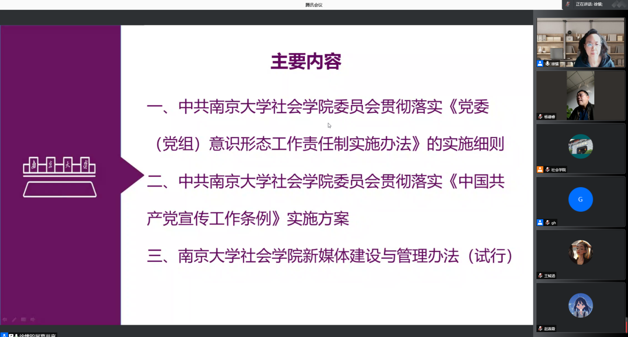 在研讨阶段,院长成伯清同志强调,重庆时时彩计划 领导班子要积极承担意识形态工作责任,时刻关注意识形态工作进度,不断完善意识形态工作机制,落实意识形态工作方案,严肃意识形态工作问责。做好党的宣传工作是完善意识形态工作的重要途径之一,宣传工作应坚定思想、打开格局,建立健全的宣传工作体系。此外,打造高质量的新媒体宣传阵地,能够为宣传工作和意识形态工作提供强大的助力,对维护网络意识形态安全、肃清网络文化环境极具意义。