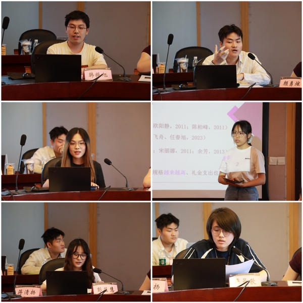 2022级本科生韩振旭带来《从社工视角看当代青年“搭子社交”现象》的研究,全面探究青年人际关系的演变趋势与发展走向,揭示青年群体情感需求的动态变化。2021级本科生颜勇炫就《怀孕和产后早期的空间能力》进行分析,发现啮齿类动物在怀孕期间空间能力上升,在产后早期变化不显著,人类在怀孕期间和产后早期空间能力显著下降。2021级本科生陈钰婷以《劳动力市场分割机制变迁与性别优势逆转——城镇劳动力初职离职风险的历时性分析(1978-2018)》为题进行报告。该研究聚焦市场类型、单位体制与性别的交互影响,探讨其随市场化转型的演变。2022级本科生蒋清扬报告的主题是《无事办酒:现代化转型与农村人情异化现象研究》,聚焦农村“无事办酒”等日益突出的人情异化现象,反映出市场经济渗透、城市化加速等因素对乡村社会关系与文化生态的重塑。2022级本科生彭蕴慧和周宸浩带来题为《医共体纾解乡村医保基金短缺:曙光与阴影——以安徽省霍山县医共体建设为例》的研究,探讨医共体改革对缓解乡村医保基金短缺的作用及挑战。2022级本科生严曼歌汇报了和陈亦彬、谢德霖、陈聪共同完成的研究《县域城乡融合与关系网络嵌入:青年参与乡村产业振兴的路径分析》,他们通过在江西5县21个调研点进行调查,提炼出青年参与乡村产业振兴的四大路径。