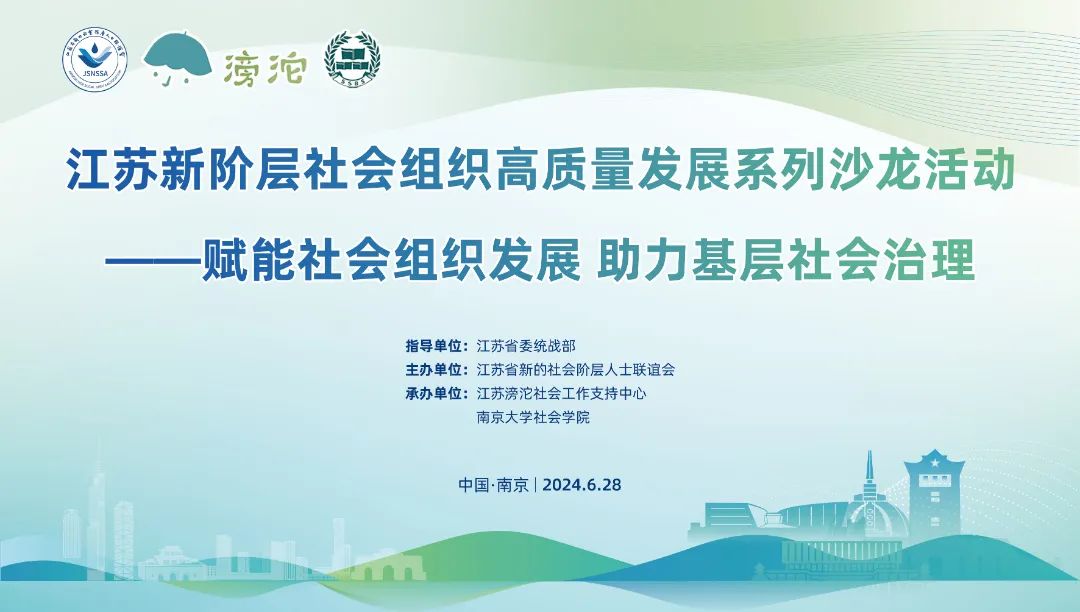 和江苏滂沱社会工作支持中心共同承办的“江苏新阶层社会组织高质量发展系列沙龙活动——赋能社会组织发展 助力基层社会治理”在南京大学国际会议中心隆重开幕。省级部门有关领导,相关社会组织负责人、社会工作者代表及省内外有关专家学者,省、市新联会社会组织从业人员分会会员等各界人士共同出席了本次活动。