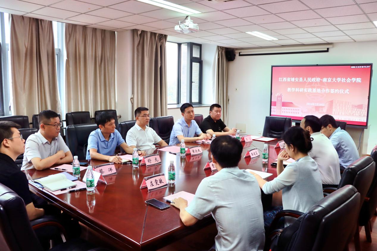 陈家建和余华武分别代表两家单位进行签约,与会人员共同见证。随后靖安县人民政府一行参观了南京大学仙林校区校史馆。