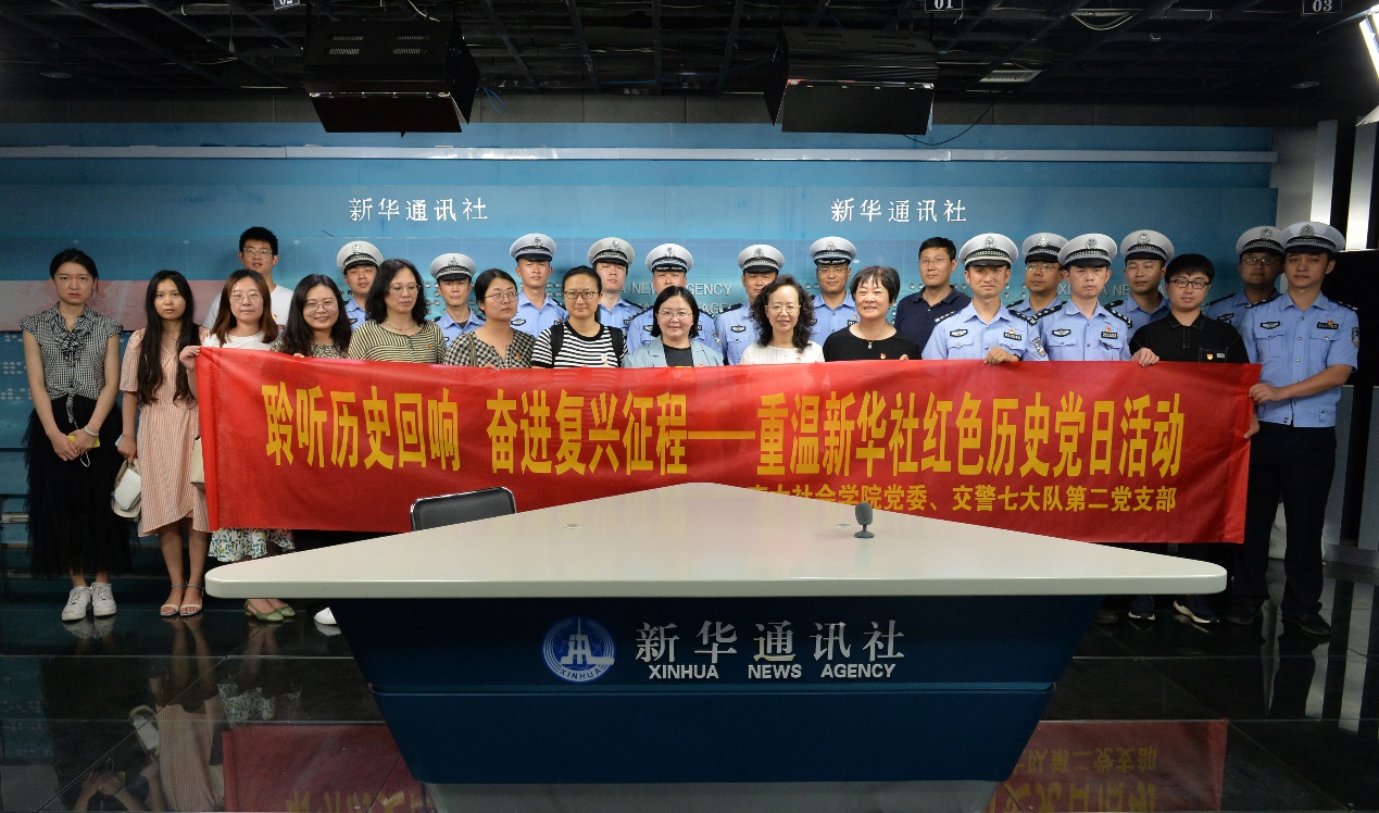 6月22日,为推进常态化党史教育,丰富党史学习内容,献礼“七一”党的生日,时时彩计划-重庆时时彩计划 教工党支部联合南京市公安局交警支队第七大队大二党支部、新华社江苏分社采编党支部,在新华社江苏分社共同开展“聆听历史回响 奋进复兴征程——重温新华社红色历史”主题党日活动。