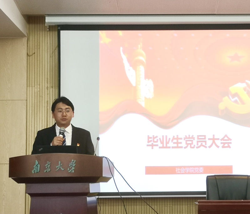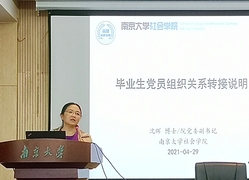 大会在徐愫书记的 “生逢盛世,肩负重任”开场致词中拉开序幕,徐书记表达了对毕业生党员的祝福与不舍,希望同学们能够牢记母校“诚朴雄伟,励学敦行”的校训,将南大精神、南大文化带到新的工作岗位、新的学校。在中国共产党成立一百周年之际,徐书记对每一位青年党员提出期盼:希望在座的每一位同学都能牢记党员身份,不忘初心,始终保持政治热情,永葆党员先锋本色,满怀对祖国和人民的赤诚之心,勇做走在时代前列的奋进者、开拓者、奉献者,以满腔的热情投身中国特色社会主义建设的伟大事业之中!