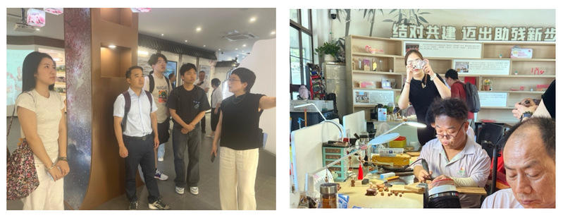 8月14日上午,调研组赴阳山镇调研。首先参观了阳山村桃文化创客中心,负责人向调研组介绍了阳山水蜜桃的基本情况和桃文化创客中心的运营,该中心的桃雕工坊为当地残疾人就业创业提供了新空间。随后,调研组赴阳山镇火炬村电商研学中心参观,并开展座谈会。阳山镇社工条线负责人以及火炬村两委班子参加座谈。调研组围绕火炬村的基本情况、水蜜桃的产业状况和产业链党建、支部建在自然村的经验做法等展开调研。